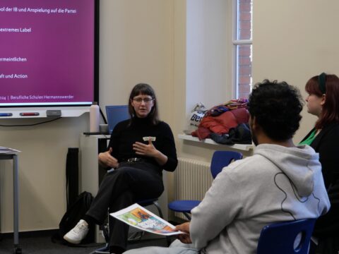 Heute hat unser dreitägiger Workshop „Fake FACTory“ an den Beruflichen Schulen Hermannswerder begonnen. Wir begannen den Workshop mit den 19 jungen Erwachsenen der Fachschule für soziale Berufe mit einer offenen Gesprächsrunde zu gemachten Erfahrungen mit Verschwörungserzählungen, Falschnachrichten und verschwörungsgläubigen Menschen im eigenen Umfeld.