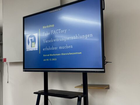 Der Abschluss des letzten Workshop-Tags war von den Präsentationen zu den selbst ausgedachten Verschwörungserzählungen geprägt. Die Teilnehmende präsentierten unterschiedlichste Produkte, von einem Comic, über eine Powerpoint-Präsentation bis hin zu einer Fotoserie, in denen die eigenen Verschwörungserzählungen präsentiert und gleichzeitig entkräftet wurden.