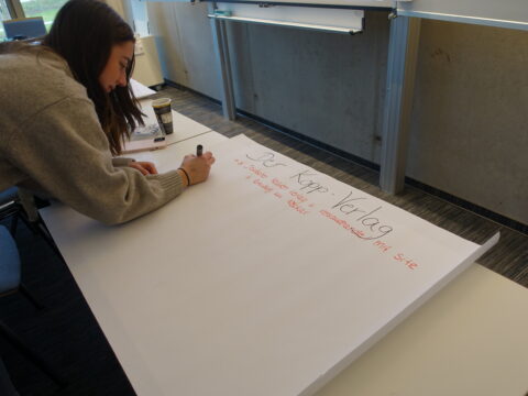 Heute früh fand der erste Workshop-Termin am Goethe-Gymnasium in Nauen statt. Zum Einstieg teilten wir dem Geschichtsleistungskurs der Jahrgangsstufe 11 drei historische Verschwörungserzählungen aus: Die Jugendlichen befassten sich mit den antisemitischen Verschwörungserzählungen der Ritualmordlegende, den „Protokollen der Weisen von Zion“ und einer Verschwörungserzählung zur Rotschild-Familie und arbeiteten Vorwürfe und Zuschreibungen gegenüber jüdischen Personen heraus (siehe verlinkte Arbeitsblätter der KIgA e. V.; diese sind auch online verfügbar unter https://www.anders-denken.info/agieren/antisemitische-verschwörungsfantasien). Wir besprachen daraufhin die Inhalte und Kontexte der Verschwörungserzählungen und die historischen Anfänge von Verschwörungsdenken und Bezüge bis in die Gegenwart.