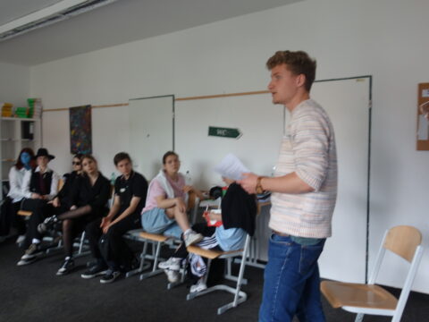 Dass Antisemitismus viele Jahrhunderte weit zurückgeht immer wieder in verschiedenen Verschwörungserzählungen aufflammt, lernten die Teilnehmenden im Rahmen der interaktiven Einheit von Wolf van Vugt, Politikwissenschaftler und Diversity-Trainer. Die Teilnehmenden analysierten alte antisemitische Stereotype, damit sie diese die in Zukunft schneller einordnen können. Die wichtigste Erkenntnis eines Schülers war, dass es ungemein wichtig ist, Menschen ohne Vorurteile zu begegnen.